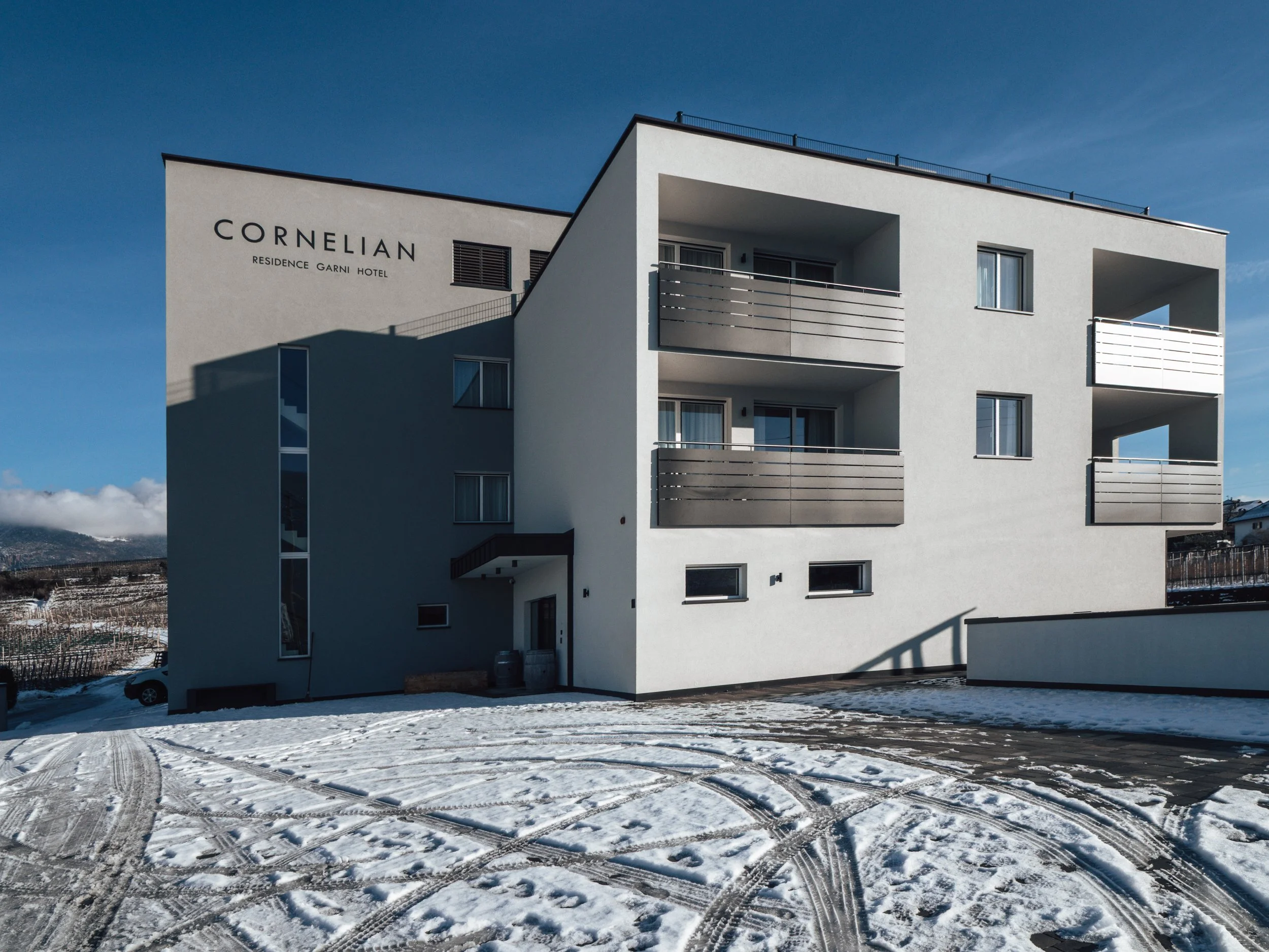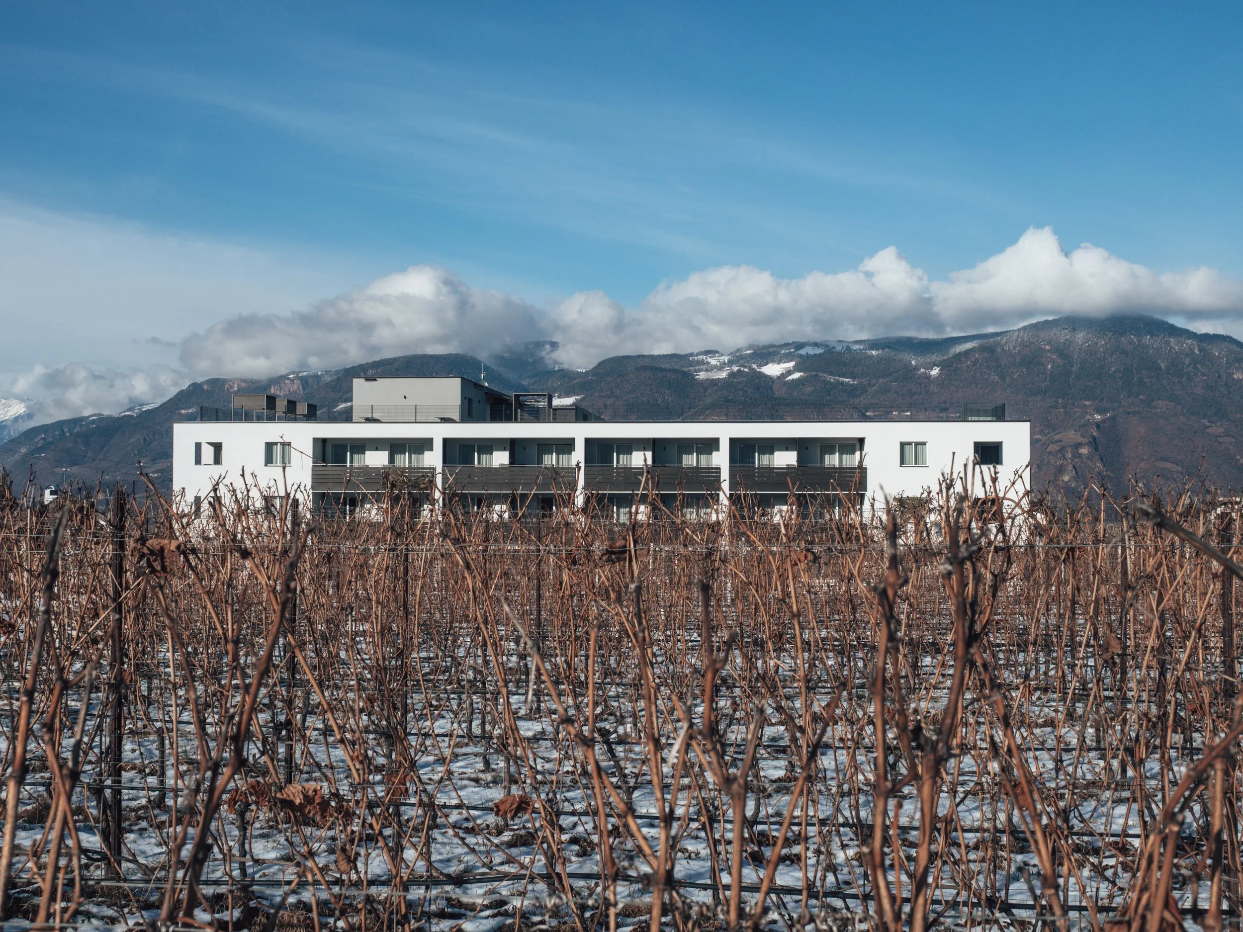 Eingebettet in die Weinlandschaft von Schreckbichl entstand ein 4-Sterne-Hotel Garni,
